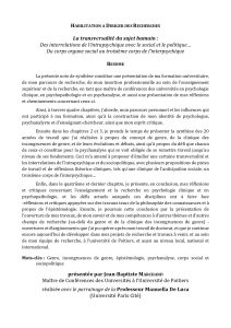 Titre : « La transversalité du sujet humain : Des interrelations de l’intrapsychique avec le social et le politique… Du corps organe social au troisième corps de l’interpsychique »